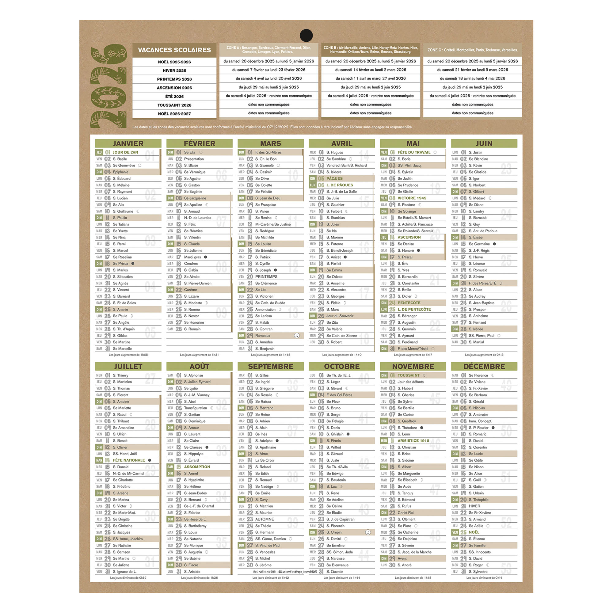 BOUCHUT Classic Calendar 16 Months 40.5 x 55 cm: Buy Online at