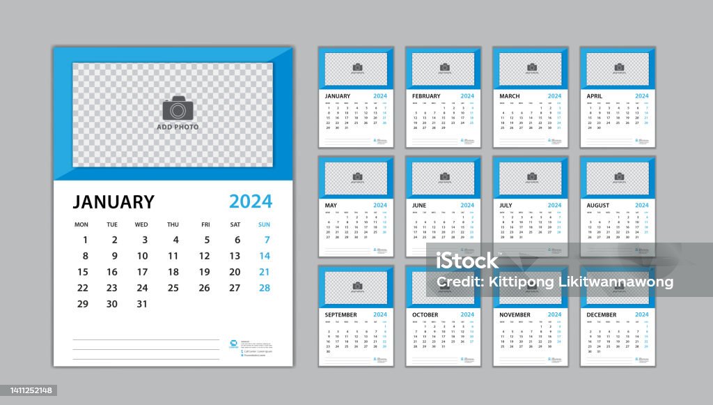 Calendar 2024 Template Set On Blue Background Desk Calendar 2024